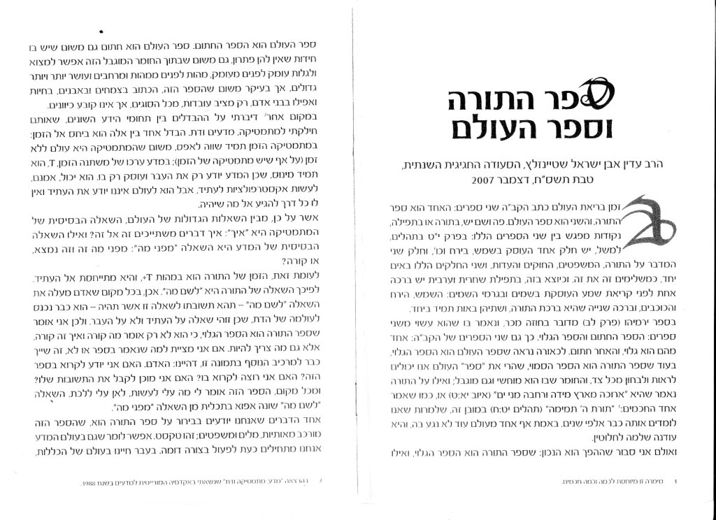 שפה אחת לכל המדעים פורסם ע"יdavid pisanti23 בפברואר 202126 בדצמבר 2021פורסם בבריאות ואריכות ימים - בוא"י., חיבור התורה והמדע, מיחשוב לשתף שתף בפייסבוק (נפתח בחלון חדש) פייסבוק אהבתי טוען... קשור פורסם על ידי david pisanti יליד חיפה, בוגר הטכניון. עבד עם מחשבים במחלקה למתמטיקה שימושית, באגף סימולציות, בסוכנות החלל האירופאית, בשנות השבעים. למד אצל הרבי בארה"ב. עוסק במחקר ופיתוח. הצג פוסטים נוספים